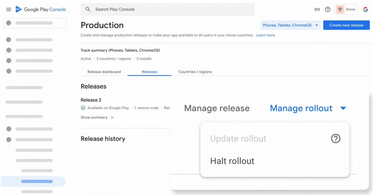 Обновления в Google Play. Разработчики приложений смогут приостанавливать активные релизы в случае возникновения багов. Это позволит оперативно исправлять ошибки.