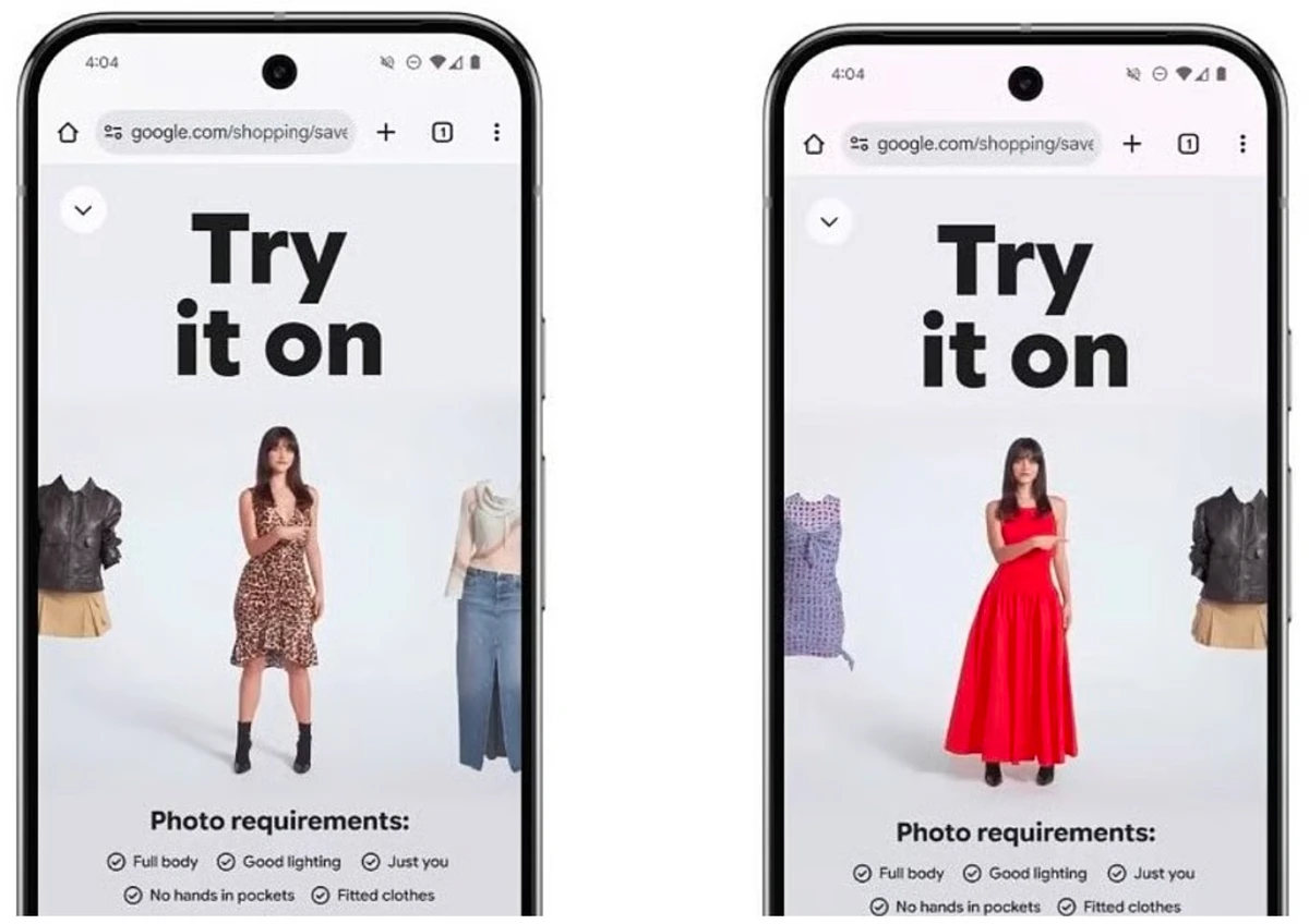 Google AI Shopping Try On. Функция позволяет примерить одежду, аксессуары или визуализировать объекты (например, ковер в комнате) с помощью камеры смартфона. Брендам нужно размещать товары в каналах, из которых Google будет "брать" их для такого взаимодействия (в частности Google Shopping).