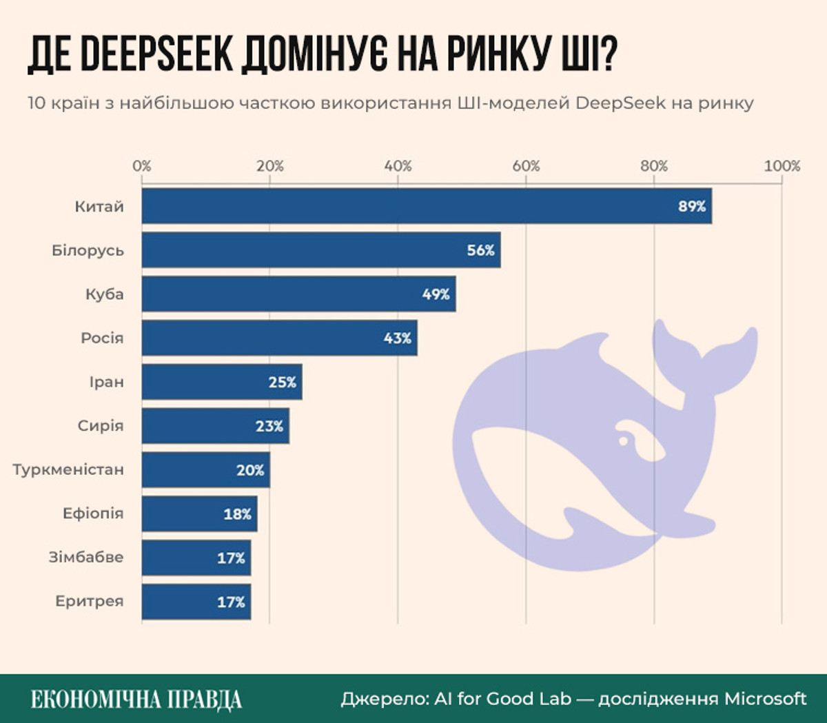 В Microsoft отмечают, что китайская модель DeepSeek R1 приобретает популярность в восходящих странах: в Эфиопии ее доля на рынке составляет 18%, в Зимбабве – 17%.