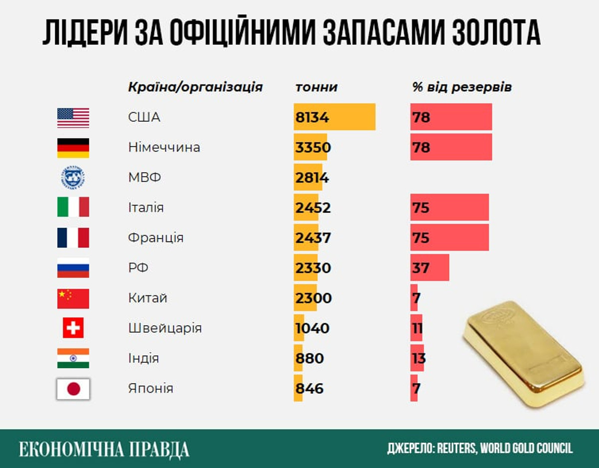 Як наслідок, торік золото подорожчало на 35%, а з початку 2025-го – ще на понад 50%. Після початку великої війни в Україні почали активно наповнювати свої запаси золота її сусіди – Польща та Угорщина.