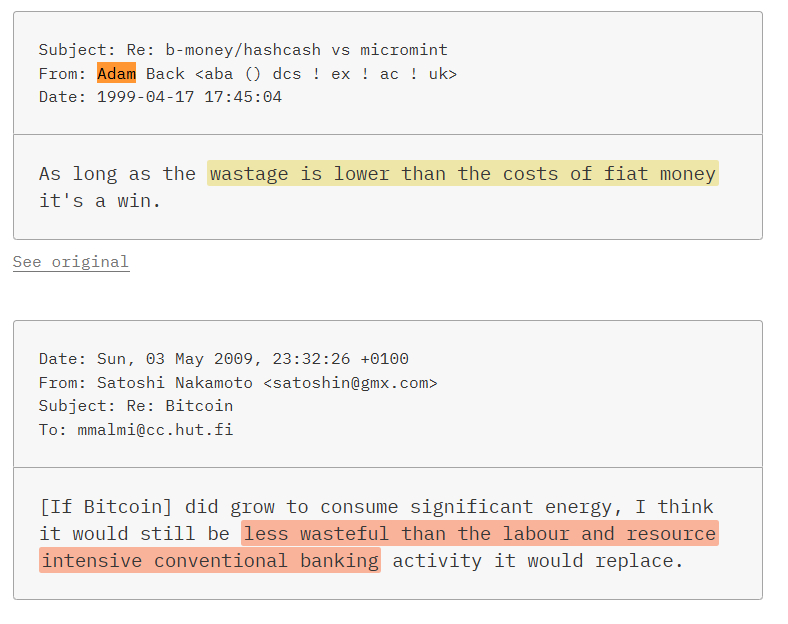 У 2017 році колишній стажер SpaceX виклав текст із тезою, що Ілон Маск "ймовірно створив Bitcoin". Аргументи були типу: сильний технічний бекграунд, досвід із платежами, схожі мовні звички.