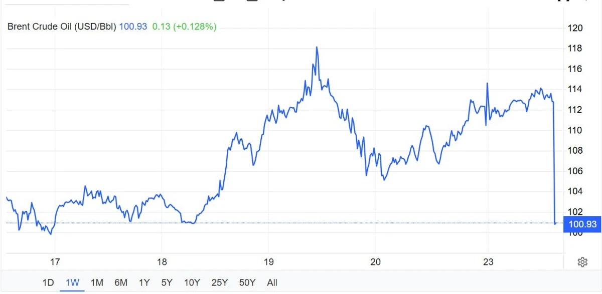 Після цих заяв ціни на нафту Brent почали різко падати, стали близько 100 доларів за барель.