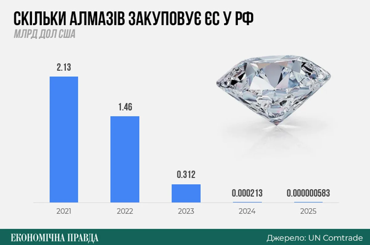 У результаті санкцій офіційний імпорт ЄС знизився майже до нуля. Проте Москва, як і в інших підсанкційних секторах, навчилася обходити обмеження. Ключовим транзитним хабом для поставок алмазів на ринки Євросоюзу і США стала Вірменія. Через неї постачаються дорогоцінні камені на сотні мільйонів доларів.